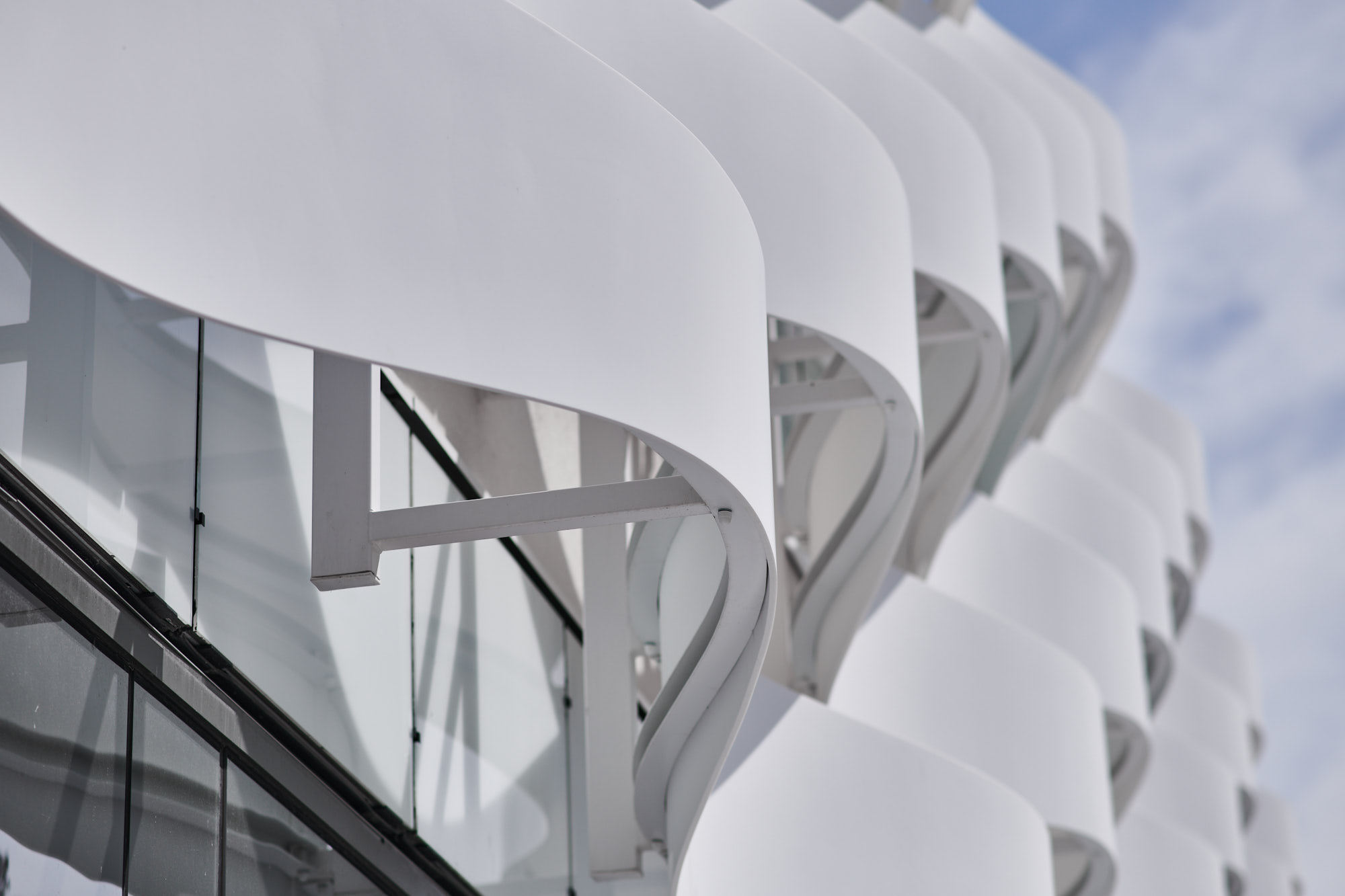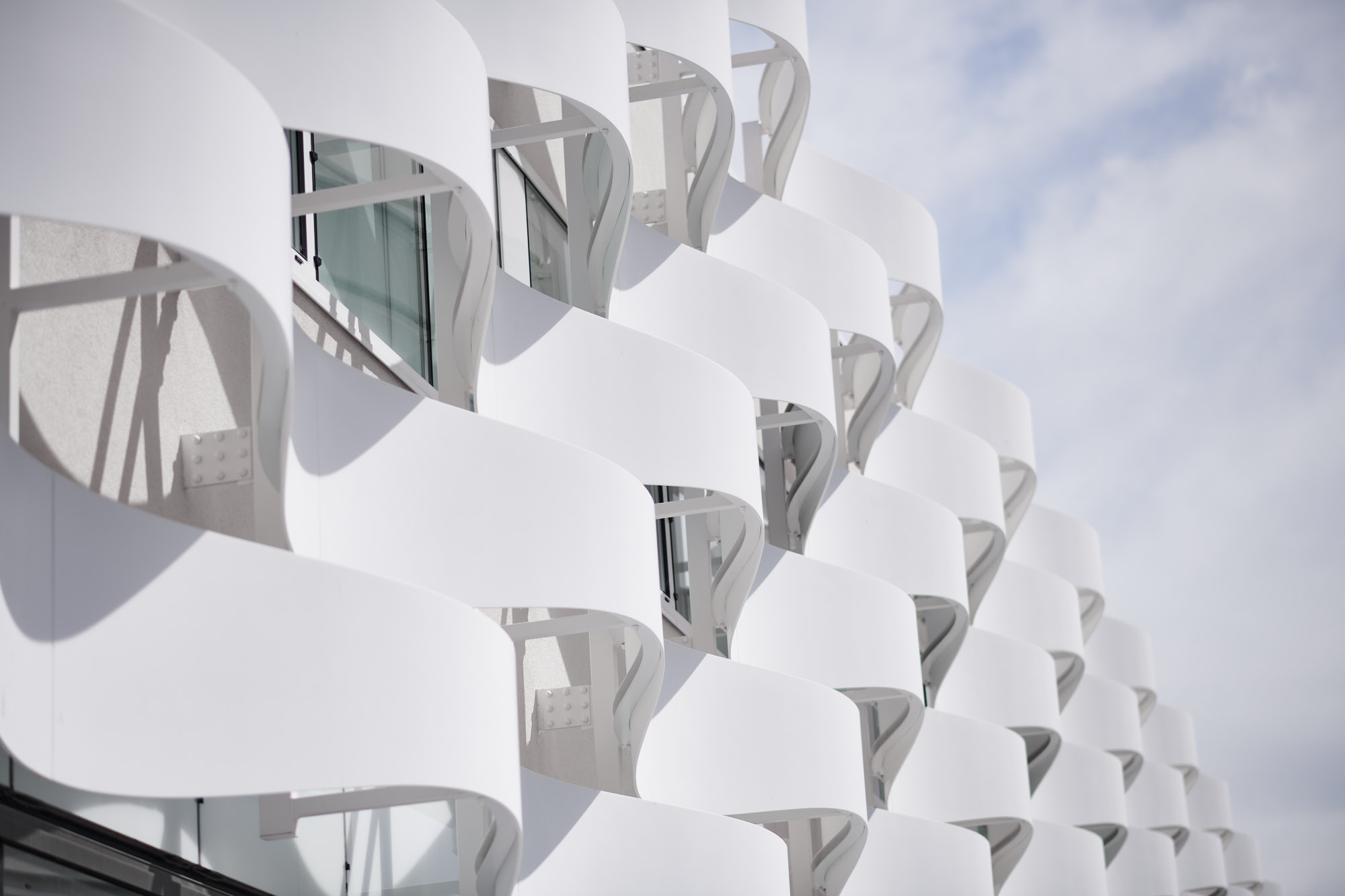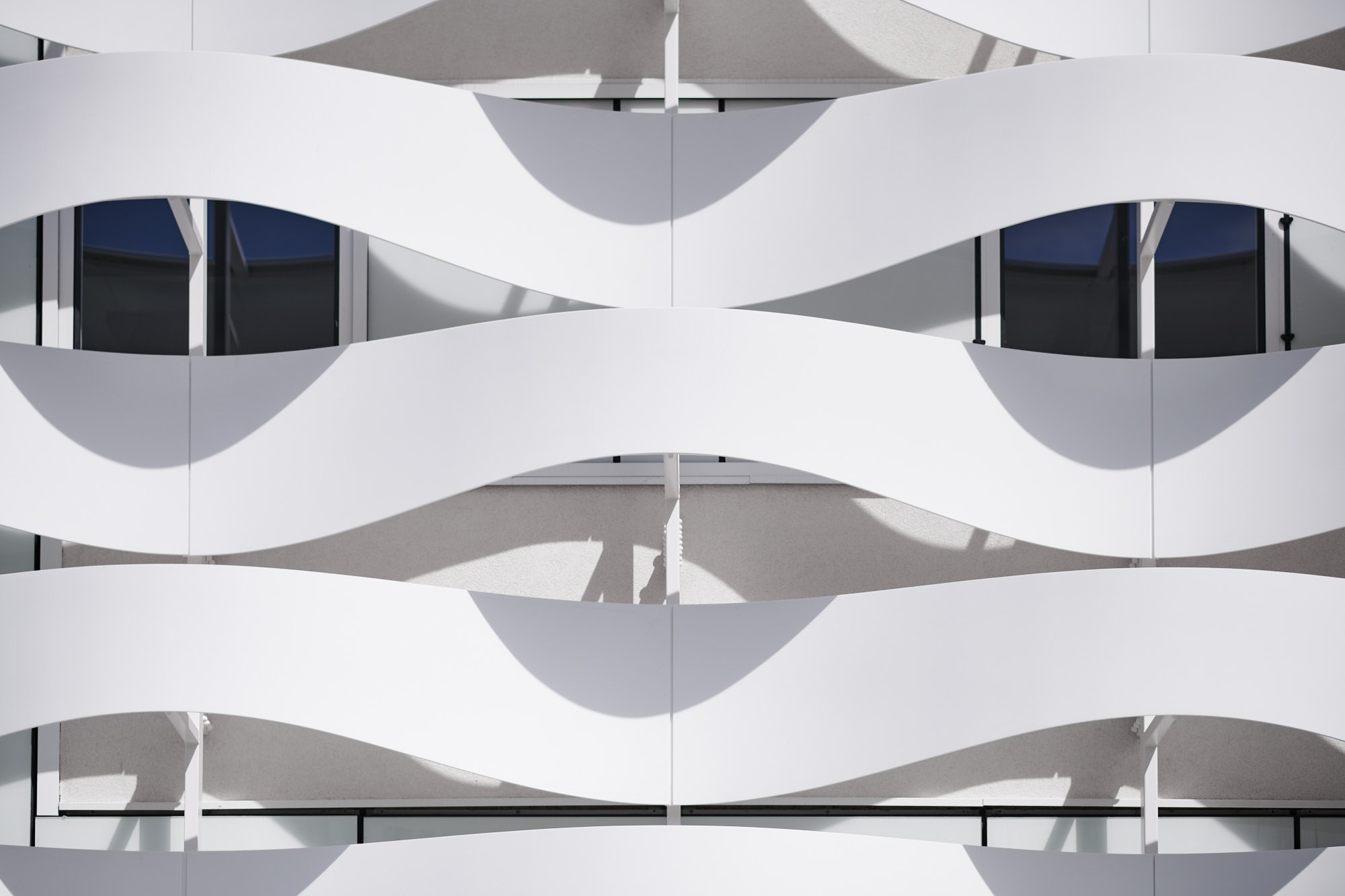 Mon approche photographique s’est attachée à révéler la relation entre la forme et la matière, en exploitant les variations lumineuses pour souligner le mouvement de la façade et la profondeur de ses reliefs. Les cadrages ont été pensés pour restituer la fluidité des lignes, l’alternance des pleins et des vides, ainsi que les effets de transparence et de texture qui donnent tout son caractère au bâtiment. Chaque photographie vise à offrir une lecture esthétique mais fidèle de l’architecture, sans artifice, en respectant la précision du dessin original.